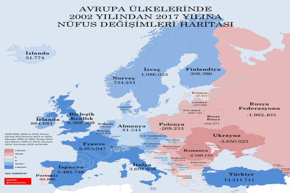 TRAKYA 2000 - Avrupa İstatistik Ofisi (Eurostat) tarafından yayımlanan projeksiyona göre, Avrupa Birliği’nin (AB) toplam nüfusu 2100 yılına kadar yüzde 11,7 azalacak. 2025’te 451,8 milyon olan AB nüfusunun, 2029’da 453,3 milyonla zirveye ulaşmasının ardından düşüşe geçerek 2100’de 398,8 milyona gerilemesi öngörülüyor.